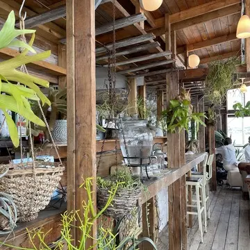 店内には珍しい植物がたくさんあって、テラス席は広々としていて目の前にはヨットハーバーが見渡せます。席の間隔も広いのでゆったり寛げるのも魅力。