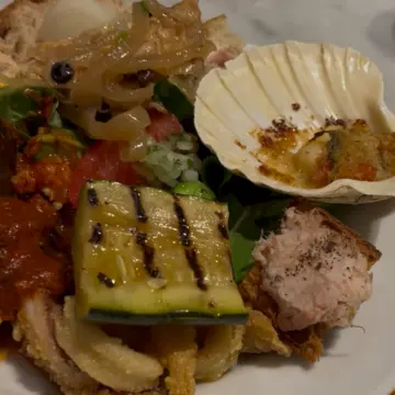 ランチは前菜がブッフェ形式になっていて、新鮮な魚介とお野菜たっぷり!