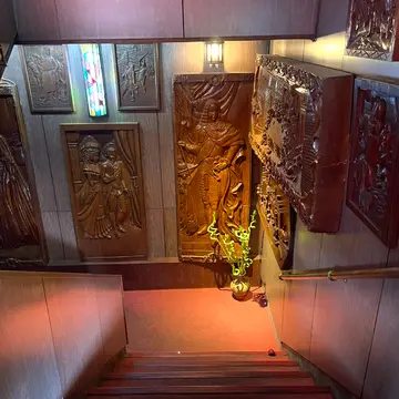 レトロな洋館風の建物で、船のキャビンをイメージした内装が特徴です。