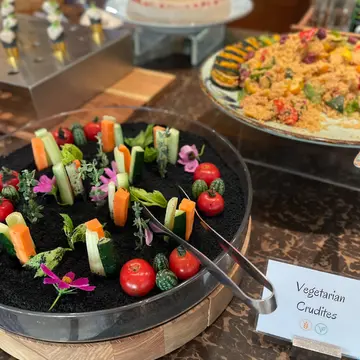 竹炭パウダーに刺したスティック野菜や可愛くディスプレイされたお料理は食べるのが勿体無いくらい。