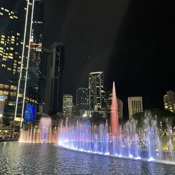 タイミングよく国民の休日マレーシアデーにあたり、ペトロナスツインタワーが国旗の色にライトアップされた瞬間も見る事が出来ました✨音楽に合わせた噴水ショーも素晴らしかったです。