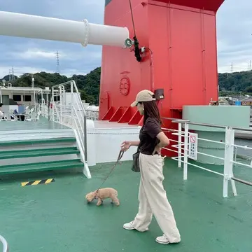 フェリーには車ごと乗りこむ事が可能で、ペットはキャリーバッグやカートに入れるか、デッキではリードを着用すればOK。