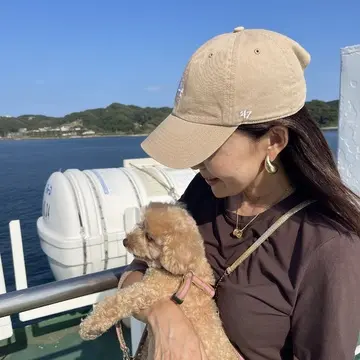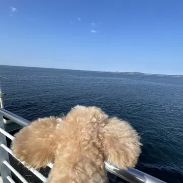 愛犬モエは初めての乗船に緊張気味でしたが、潮風が気持ちよさそうで、すぐにリラックスしていました。