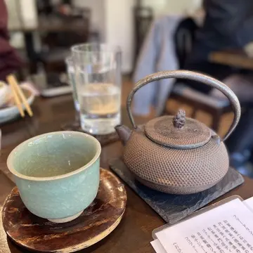 8種類から選べるフリードリンクは葡萄酢、柚子ジュース、黒豆茶を頂きました。お茶も鉄器の急須で頂けます✨(アルコールは別料金)