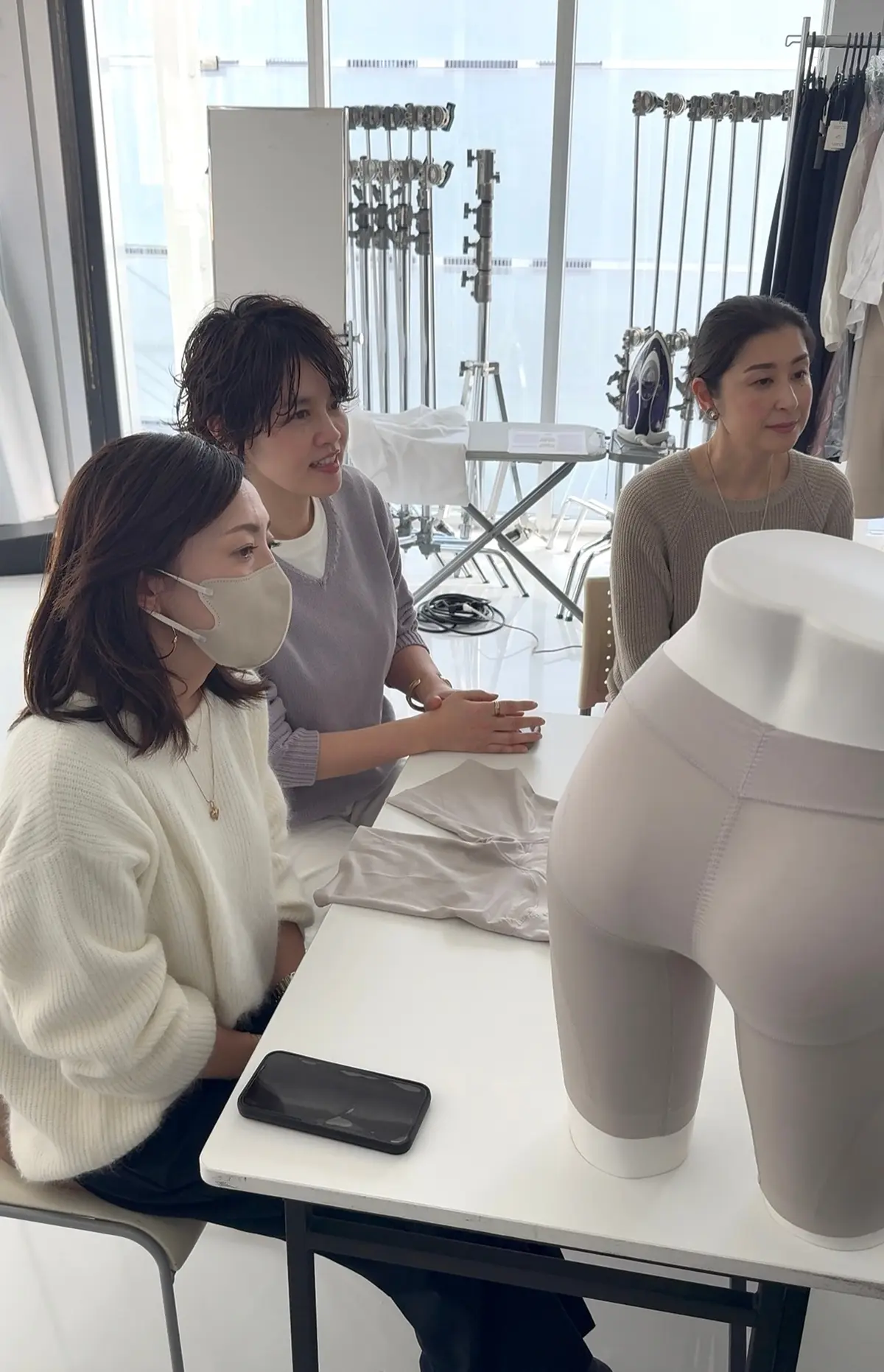 試着会&撮影に一緒に参加させて頂いたのは華組メンバーの松ヶ崎由紀子ちゃん、水口宜子ちゃん。素材やはき方についてじっくりとレクチャーを受けてきました。