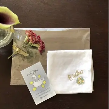 かなちゃんお手製の刺繍入りハンカチ💗