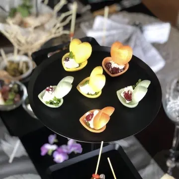 この日のテーブルコーディネートはブラック×シルバーを中心にグリーンやゴールドを差し色に。