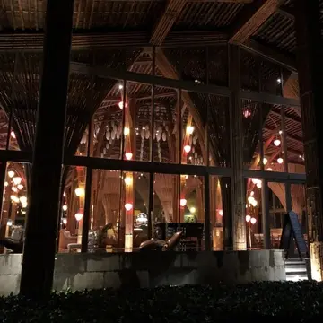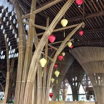 ロビー&メインダイニングのデザインが特徴的で、竹、石、木を取り入れたエコ建築。日本の東大で建築を学んだという、ベトナム人建築家ヴォ・チョン・ギア氏のデザインなんですって。