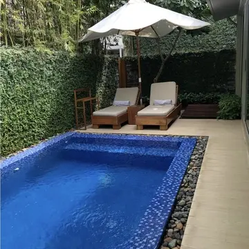泊まったお部屋は100㎡のプール付きヴィラ。缶ビール片手に至福の時間です✨