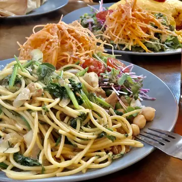 ランチに訪れたのは、逗子にある「SUNDOWNER-東京オムレツ」さん。こちらエクラでも大活躍中のエディター坪田あさみさんのご主人がオーナーシェフのお店なんです。開店前から大行列していました✨