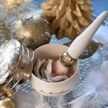 私はファンデを使っていないので、日焼け止めの後にこの真っ白い花びら状のパウダーをブラシに馴染ませ、顔全体にふんわりのせます。
