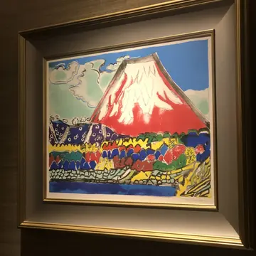 井上有一さんの書、片岡球子さんの絵画が至る所に。館内は美術館のようです。