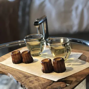 お部屋に入ると、更にウェルカムスイーツのカヌレとハーブティーを持ってきてくださいました。