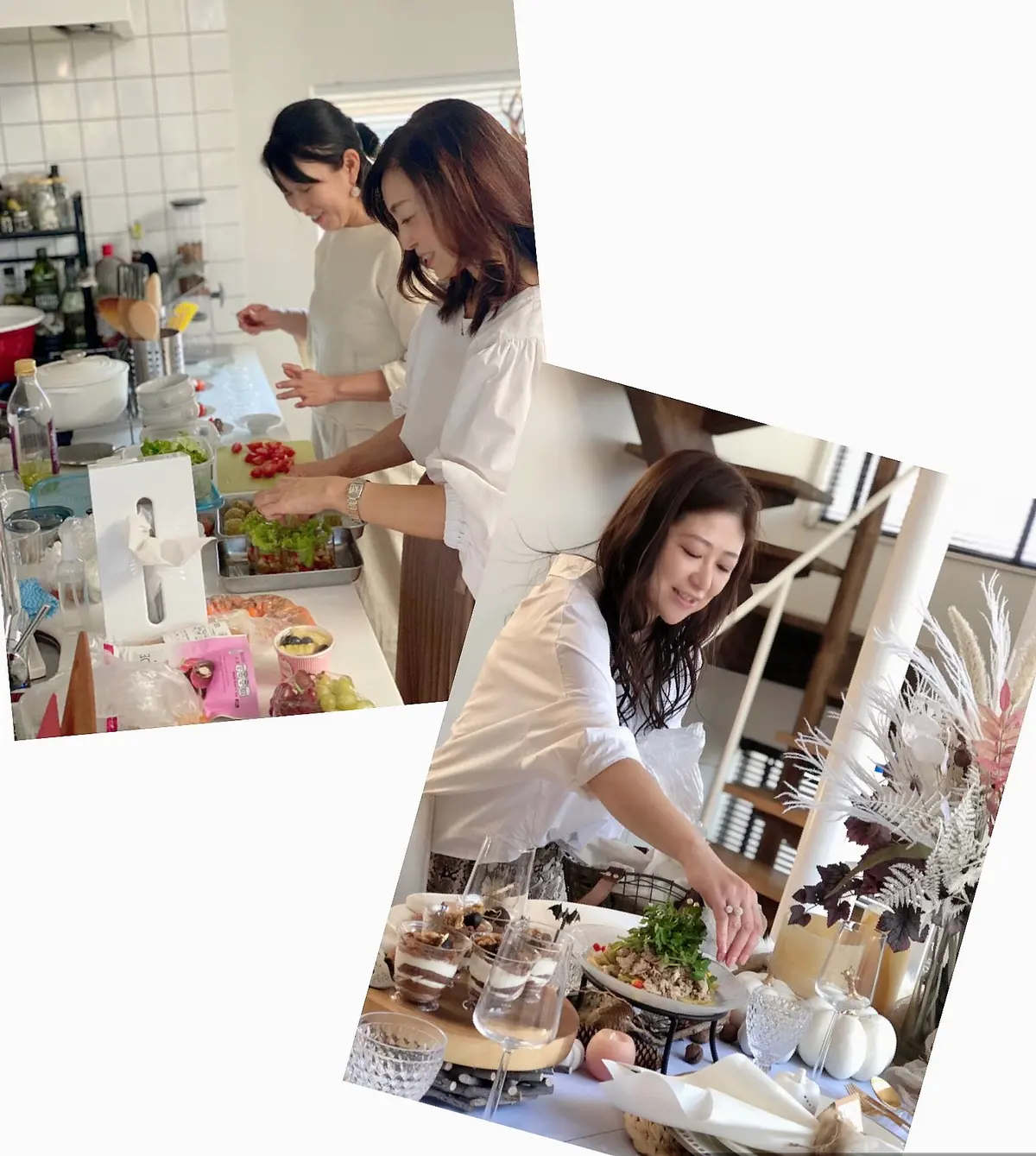 お仕事をご一緒させて頂いているお仲間であり、プロのテーブルコーディネーター、料理家の方々がいらしてくれて持ち寄りスタイルのパーティーに♡
