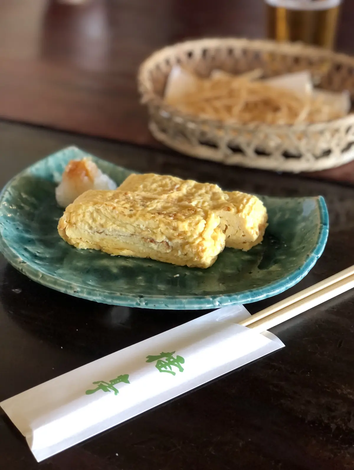 コシの強いお蕎麦に、お庭で採れたふきのとうが入った天ぷら盛り合わせ、だし巻き玉子。