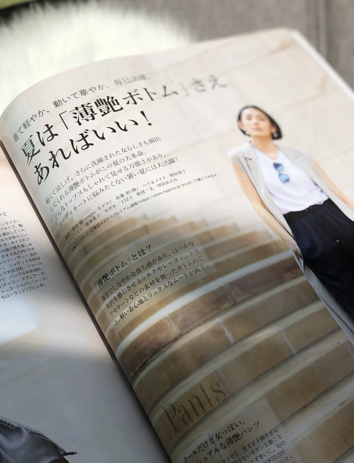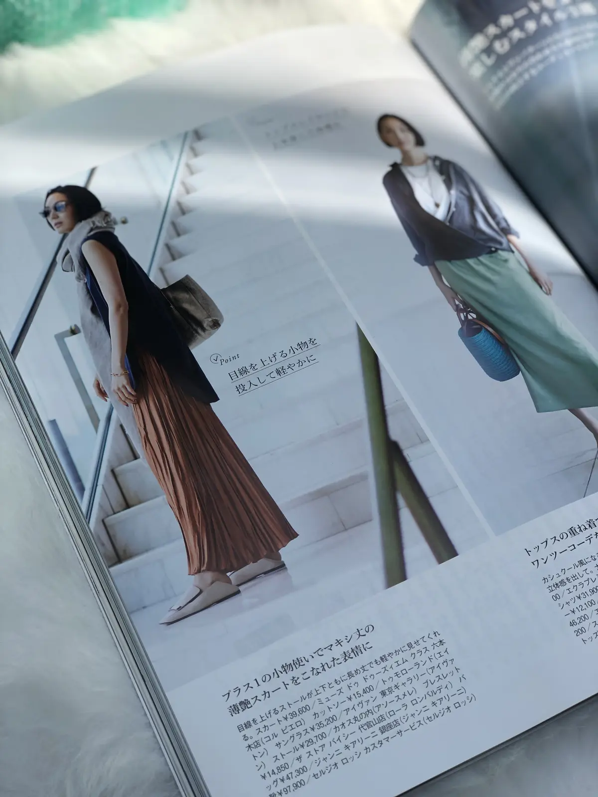 今シーズンに仲間入りしたオフホワイトのプリーツスカート。ほんのり艶やかで軽やか&涼しい✨この夏大活躍してくれそうです♪