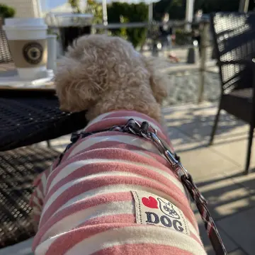 海岸からすぐ近くにある『DOG DEPT』で買ったばかりの洋服を着せて、モスカフェでちょっと一息。テラス席で寒かったですが、ワンコ連れなので我慢です^ ^
