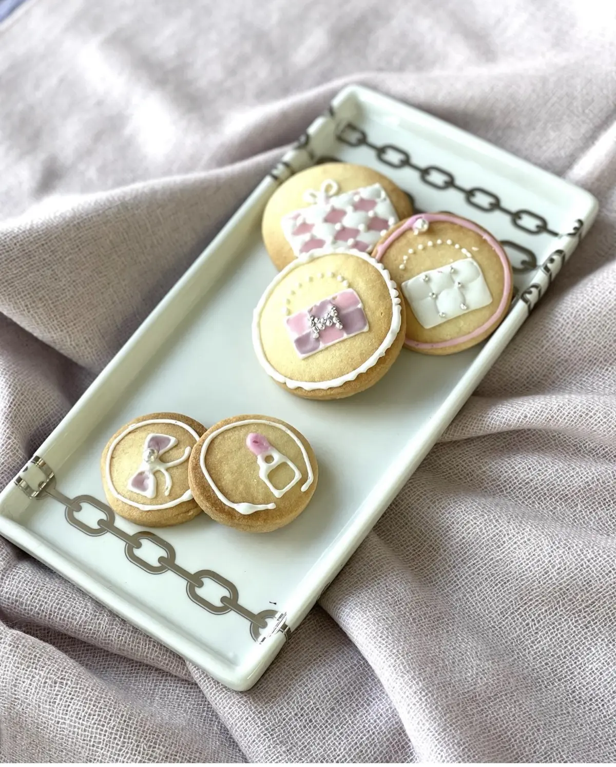 丸い型で抜いたベースのクッキーを焼き、アイシングで口紅やバッグ柄にデコレーション。自己流のデザインで線が太かったり細かったり完成度はまだまだですが、久しぶりのアイシング作業楽しかったです。
