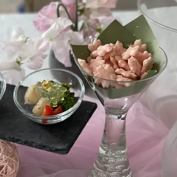 お料理以外にひなあられなどもグラスに入れて箸休めに。