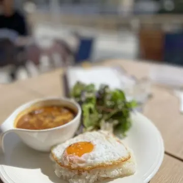 ランチタイムより早めに到着したので駐車場にもすんなり停められ、テラス席GET出来ました😊