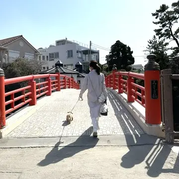 食後は海でお散歩&砂浜から続く「みそぎ橋」を渡り森戸神社でお参り。