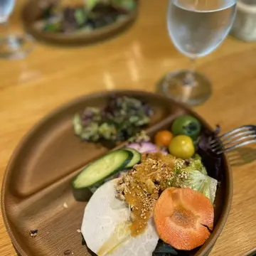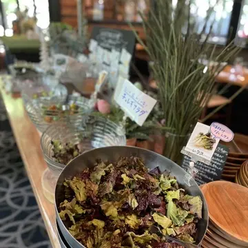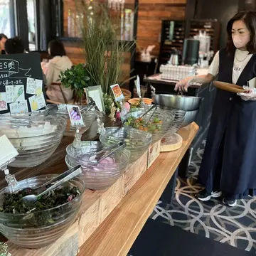 オーナーのこだわりを感じる新鮮で肉厚なお野菜がブッフェ形式でたっぷり食べられるのが嬉しい。モチモチパンやりんごソースの効いたローストポークも絶品でした。