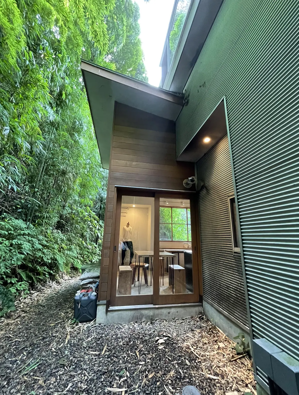 竹林に囲まれたモダンな建物にはテラス席もあります♩