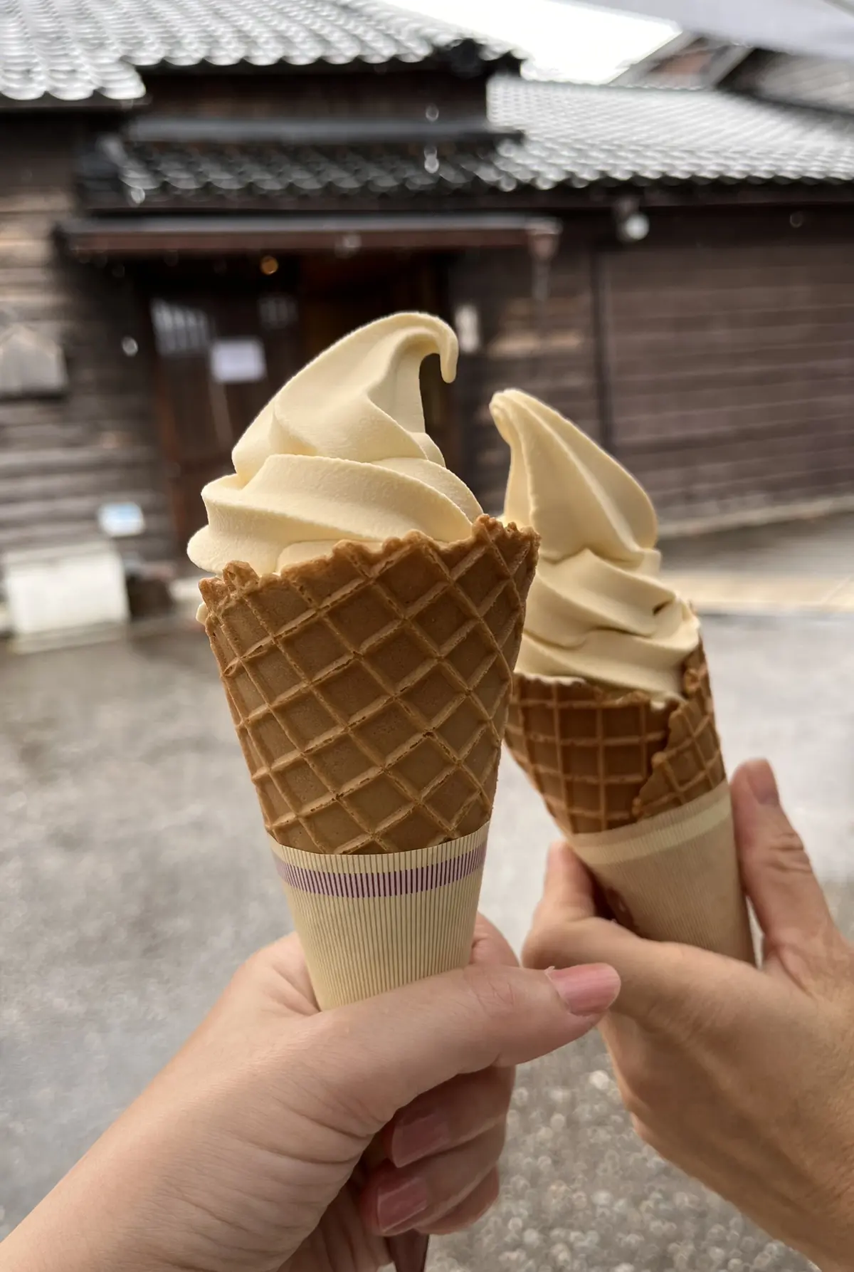 醤油のソフトクリーム、キャラメルのような味わいで絶品でした💕