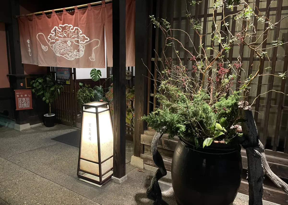 『宝生寿し』さん。市街から車で10分程の距離で金沢を感じられる素敵なお店。開放的な店内も魅力です。