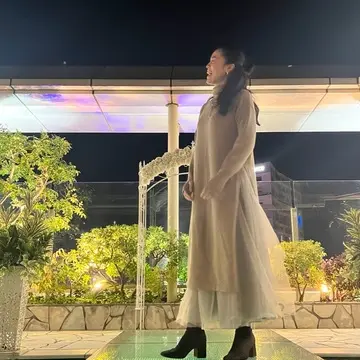 大人チュールスカートを合わせました。