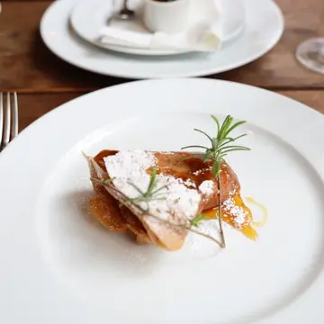 わたしが頼んだローズマリーのクレームブリュレは、パリパリのカラメルの中を割って覗くと、なんとピスタチオみたいな緑色!