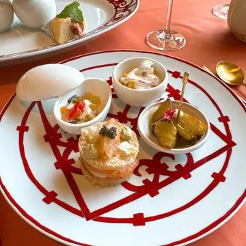 フォアグラ・アワビ・オマール海老など、豪華食材を使った充実のセイボリーと、目に美しいスイーツが盛りだくさん。
