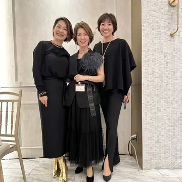 私はコサージュをアクセントにしたブラックコーデにゴールドを効かせました。
