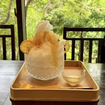 ベリーミルクと鎌倉檸檬のかき氷、そして和菓子をシェア。