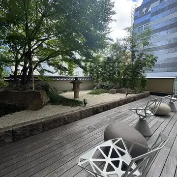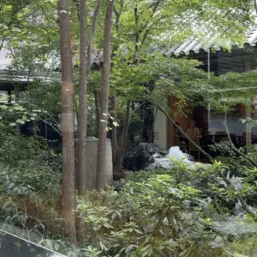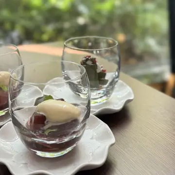 中庭の緑が見える落ち着いた雰囲気で、ゆっくりとおしゃべりを楽しみました。