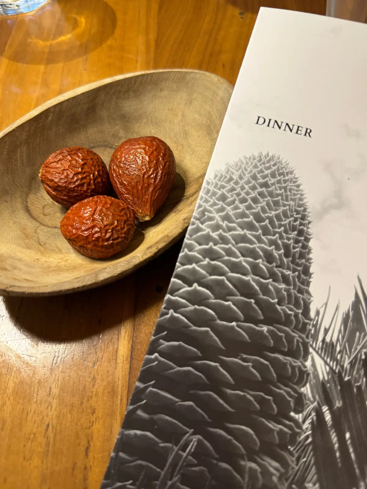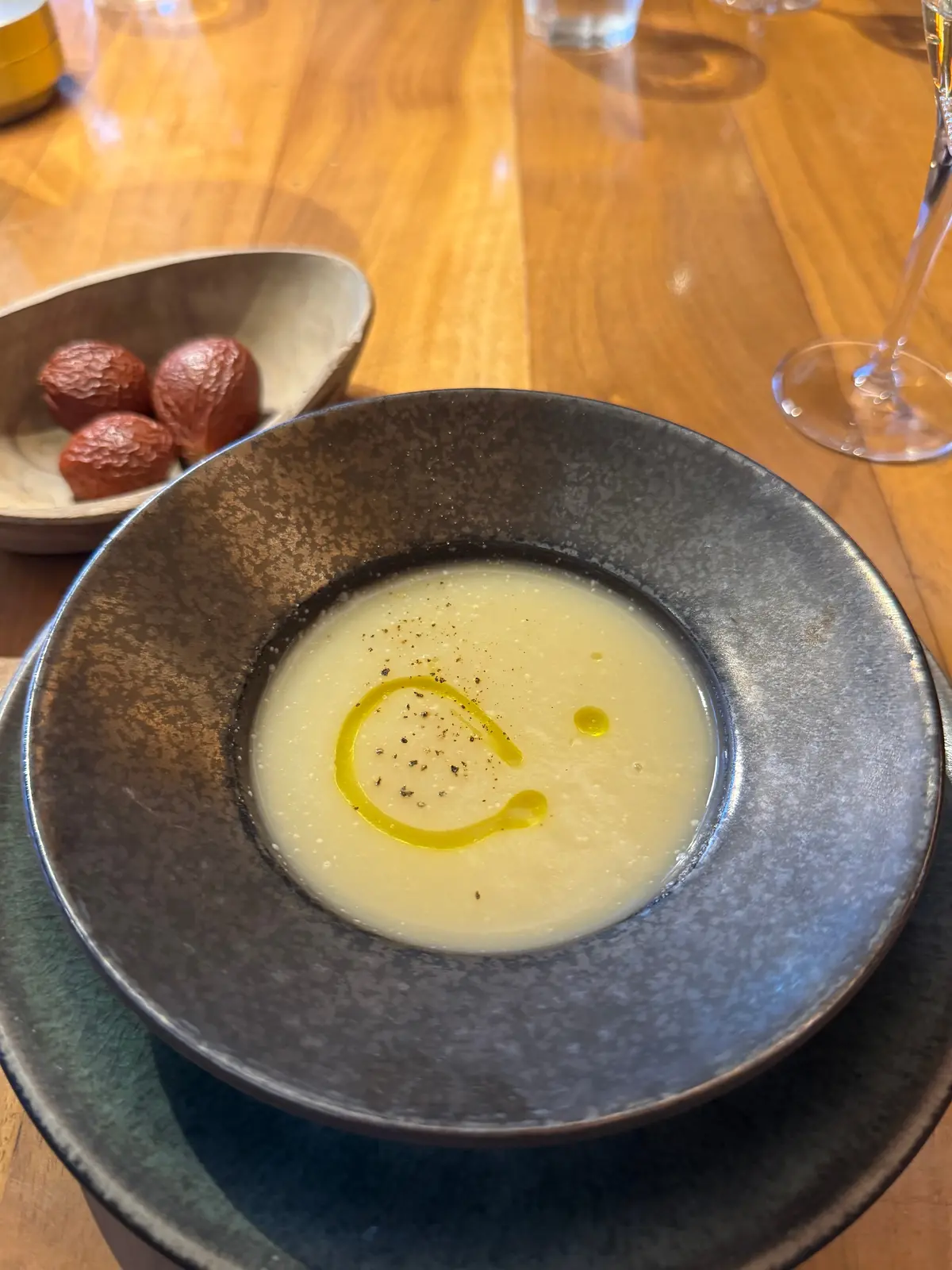 ソテツのスープに始まり、地元の食材を使ったコース料理をいただきました。