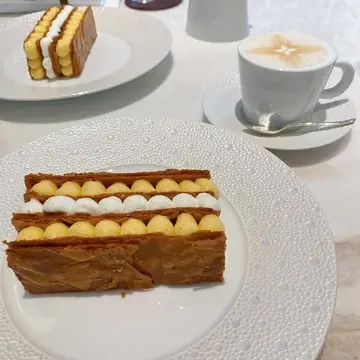モノグラムのラテアートやミルフィーユをオーダーしました。