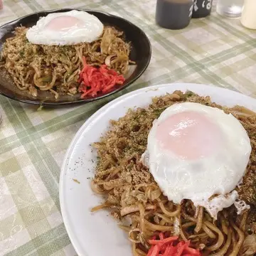 こちらでは、いか肉玉焼きそばとデラックスお好み焼きをオーダー。