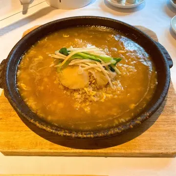 陶板の器の中でぐつぐつと煮込まれたあんかけで、冷えた体が温まりました