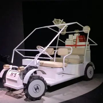 スタッフの方が運転してくれるカートに乗って暗闇を進んでいくと、No.5やシャネルのロゴがキラキラと浮かんでいます。