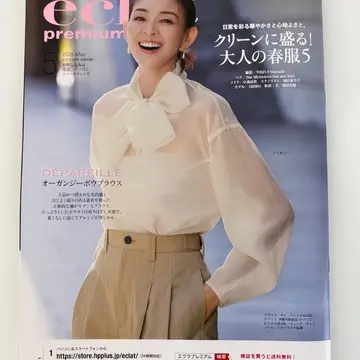 eclat premium通販P12ではモデルのSHIHOさんがお召しになっています。お色は茶黒と白黒の2展開。私は夏も見据え爽やかな白黒を選びました。フリーサイズです。