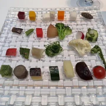 シェ・トモさんで有名なお野菜のプレートは一つひとつ説明付きで、28種類が全てオーガニック。お味付けも違うのだとか。とっても爽やかな気分になれます。