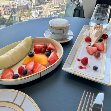 まきちゃんのお仕事あと夕方に待ち合わせ、ケーキセットとフルーツをオーダー