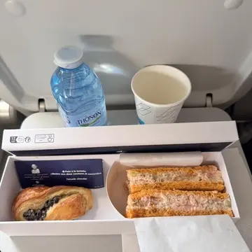 機内で出されるサンドウィッチが美味しい。笑