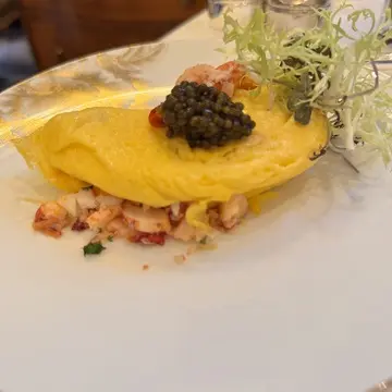 オマール海老とキャビアのオムレツ。食器は全てBernardauですね。