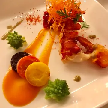 ディナーは赤の食材を使った美容に良いお料理を堪能。