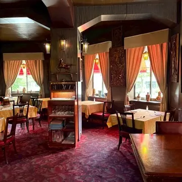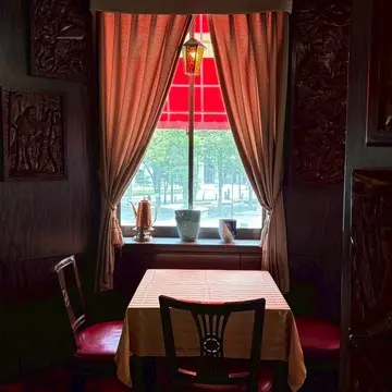 異国情緒あふれる街並みに溶け込むレトロビルの2階にある、北欧風の洋食レストランです。1963年創業の老舗。