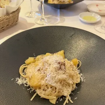 イカ、熟成させた甘いジャガイモ、パルミジャーノレッジャーノが絡んで相性バッチリ!