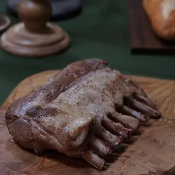 骨付きの塊肉(フレンチラック)をオーブンでじっくりローストした仔羊はクリスマスメニューにピッタリ♬