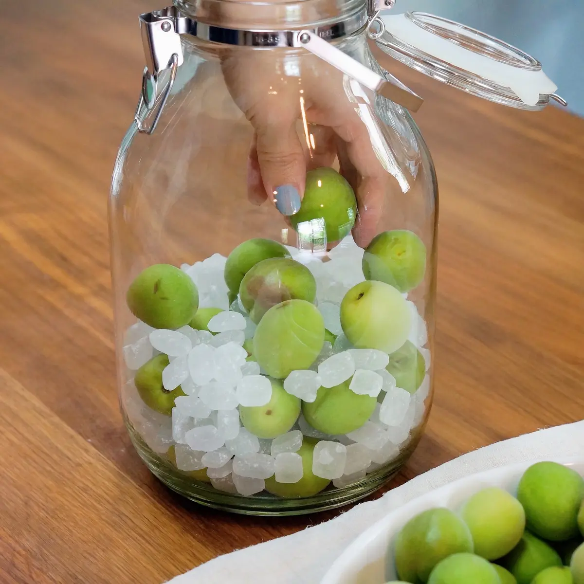 通常は青梅1㎏、氷砂糖1㎏ですが、今年の我が家は1.8kgずつで作りました。